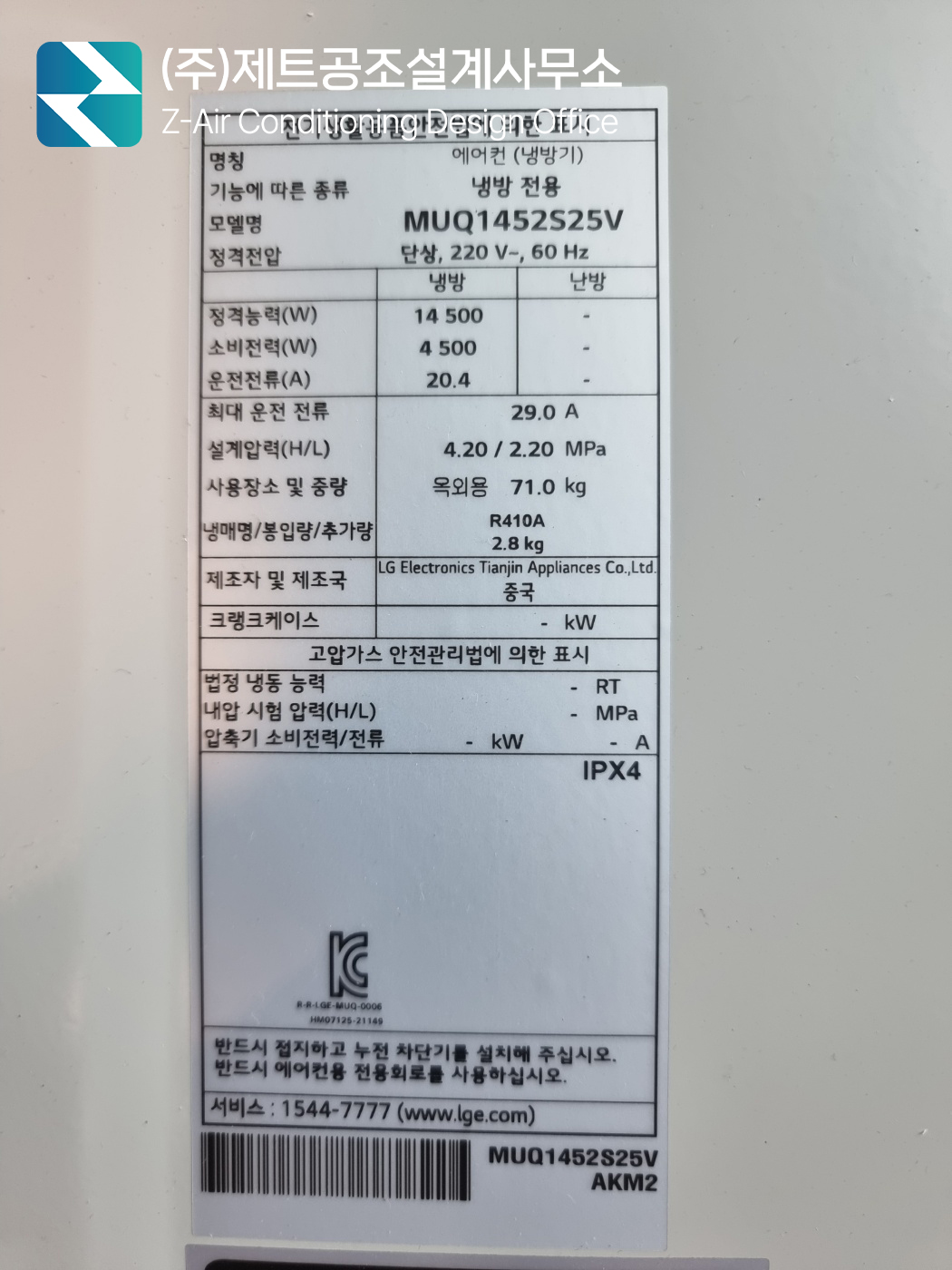 같은 상업시설이라도 공간에 따라 에어컨 부하율 계산이 달라지기 때문에 평수설계가 아닌