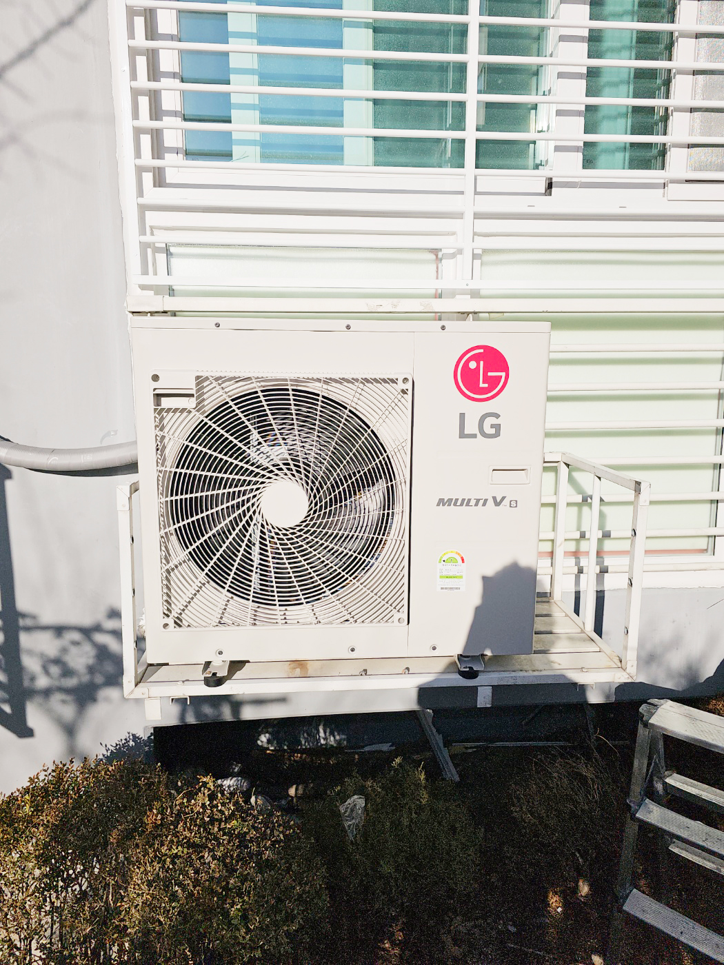 이러한 방식으로 실외기를 설치할 경우 실외기의 진동으로 인해 소음이 발생하는 경우가 빈번함으로 최대한 실외기 고정을 단단하게 하면서도 베란다의 난간과 너무 가깝지 않도록 시공하는 것이 중요합니다.