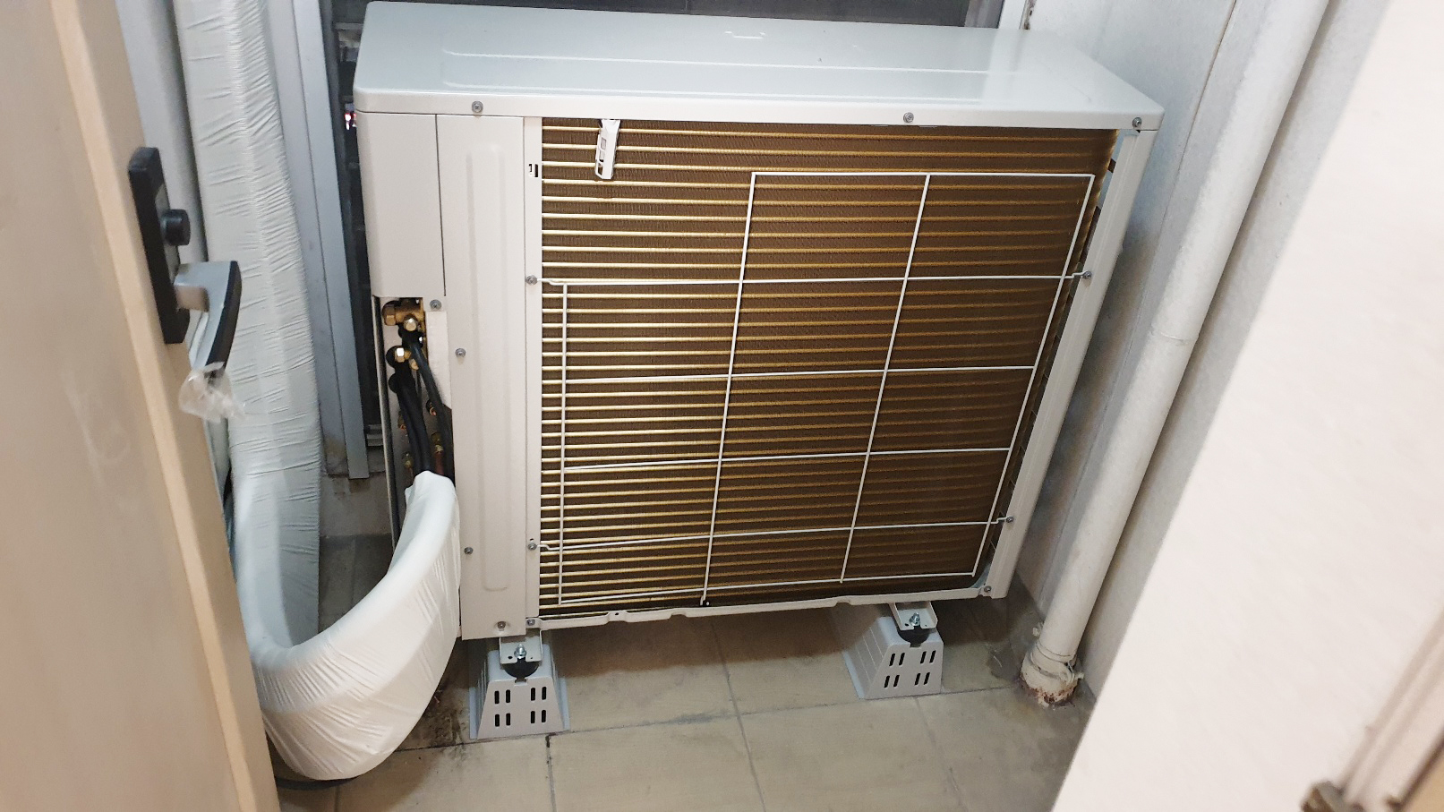 목동 센트럴 푸르지오는 실외기실이 따로 마련되어 있었으며, 사전 방문 당시 실외실에 규격을 측정하였습니다. 시공 시 에어 가이드를 설치하여 실외기의 설치를 마무리하였습니다. 실외기에서 뿜어져 나오는 바람이 공간에 머물러있게 된다면 따뜻한 바람이 쌓이고 쌓여 공간 자체에 온도를 상승시키게 됩니다. 이 경우 실외기 기기 온도도 상승하게 되어 기기 고장 또는 화재까지 이어질 수 있으니 시스템에어컨 설치 시에는 반드시 전문가에게 설계를 진행 후 설치하는 것은 필수입니다.